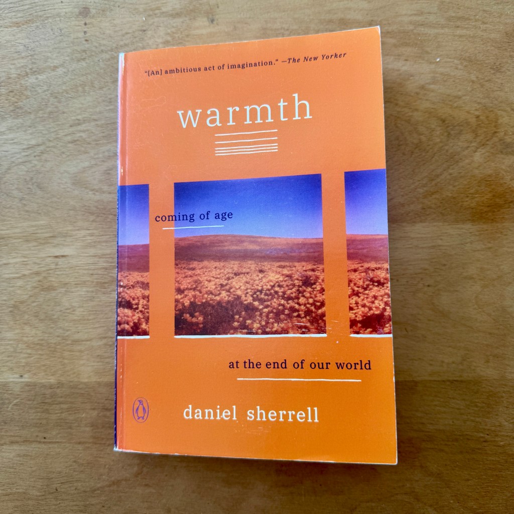 Here in lies “The Problem,” which is covered in Daniel Sherrell’s “Warmth: Coming of Age at the End of Our World.” This book is one long letter to someone who doesn’t exist quite yet. Written without ever saying the words because we have reached a point when the words, the title, the official naming has begun to undermine the entire conversation. It’s just “The Problem.” My friend in Texas quickly turned away, and when I gently probed with additional questions I was met with the now common, “We can’t talk about this.” “We will never agree.” That’s where we find ourselves. Unable to even discuss matters.